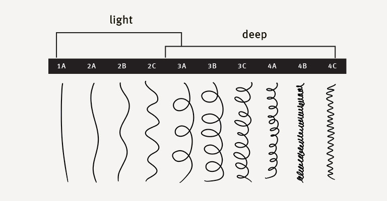 gerade, d.h. keine Locken, 2 ist wellig, 3 sind Locken, 4 sind Spiralen.