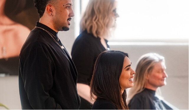 Wir nennen unsere Coloristen "Artists", weil sie mit Expertise und Hingabe präzise Farbergebnisse kreieren. Alle sind ausgebildete Profis, die regelmäßig weitergebildet werden und genau wissen, wie man Farbe individuell anpasst, das Haar gesund hält und jeden Haartyp optimal pflegt.
