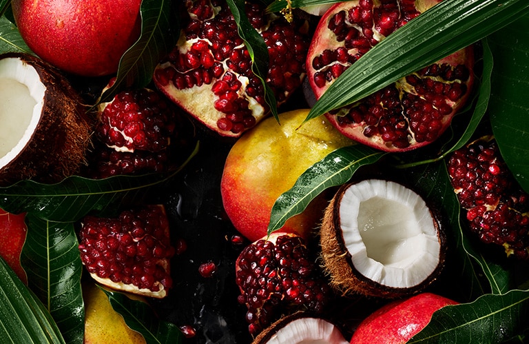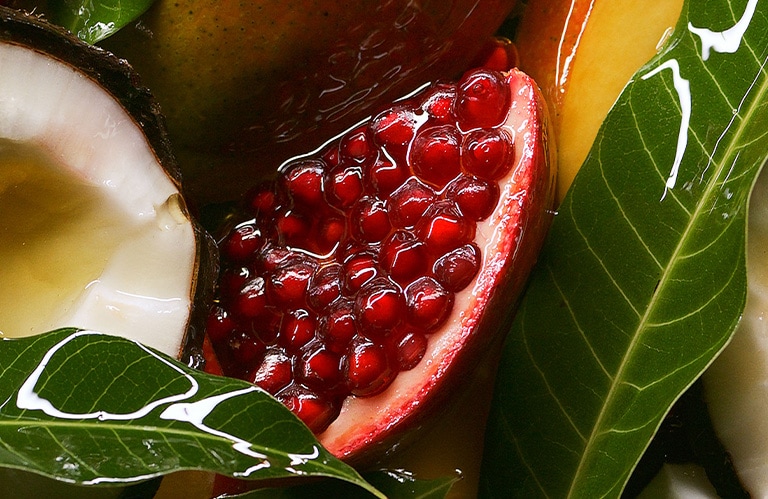 Erlebe rückverfolgbare, biologische Granatapfelsamen in Nutriplenish™ und anderen Aveda-Bestsellern.
